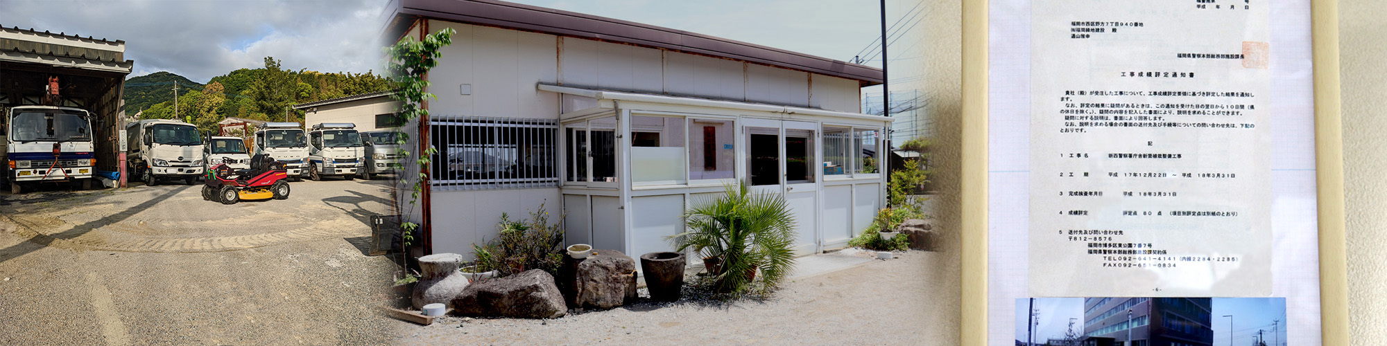 | 所在地 | 本社〒819-0043 福岡県福岡市西区野方7-940 TEL. 092-811-3278 / FAX.092-811-3241 糸島支店〒819-1621 福岡県糸島市二丈上深江54番地 TEL.092-329-2007 / FAX.092-329-2008 |